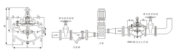 300X緩閉式止回閥由主閥、單向閥、針閥、球閥、微形過(guò)濾器和壓力表組成水力控制接管系統(tǒng)。利用水力自動(dòng)操作,可使主閥得到的開啟或關(guān)閉速度。選用300X緩閉止回閥可以防止水鍾水擊的產(chǎn)生,以達(dá)到緩閉消聲的效果。該水力控制閥產(chǎn)品利用水力自力控制,不需要其它裝置和能源,保養(yǎng)簡(jiǎn)便,開啟及緩閉平穩(wěn)。300X緩閉止回閥系列閥門產(chǎn)品廣泛用于高層建筑、生活區(qū)等供水管網(wǎng)系統(tǒng)及城市供水工程。