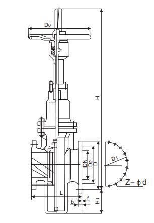 Z43H帶導流平板閘閥主要尺寸及重量