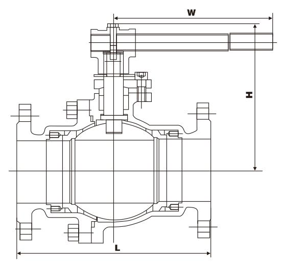 Q347F不銹鋼固定球閥規(guī)格主要尺寸: